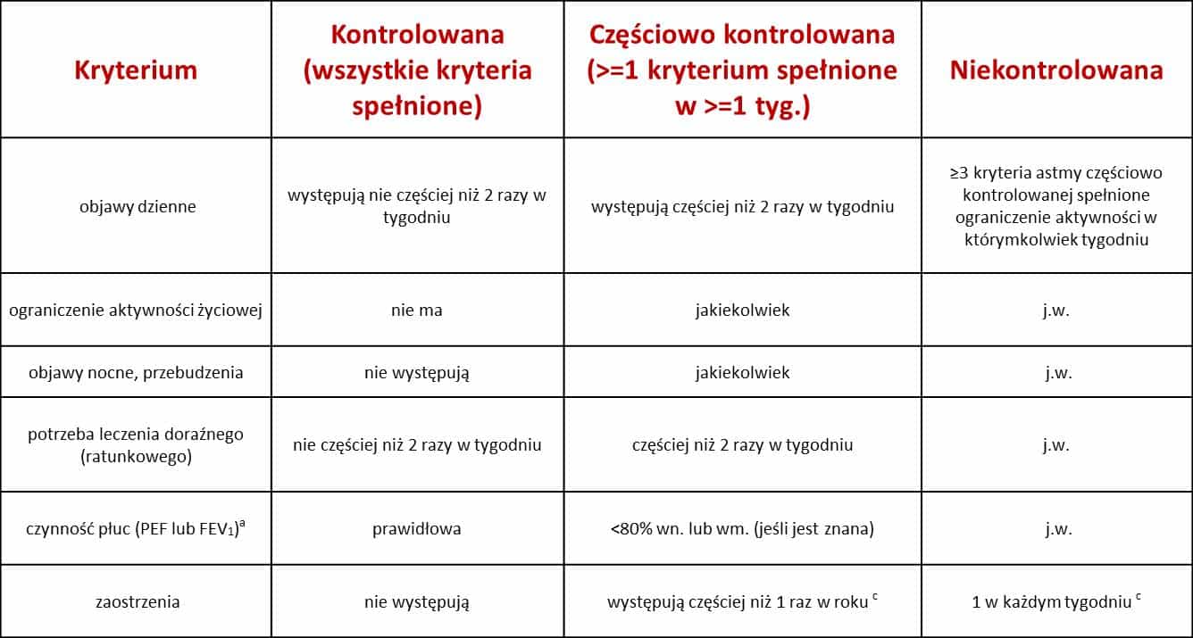 Tabela 1 Podział astmy ze względu na jej stopień kontroli wg GINA