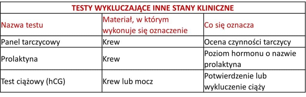 W procesie diagnostycznym można wykonać również inne testy, takie jak: