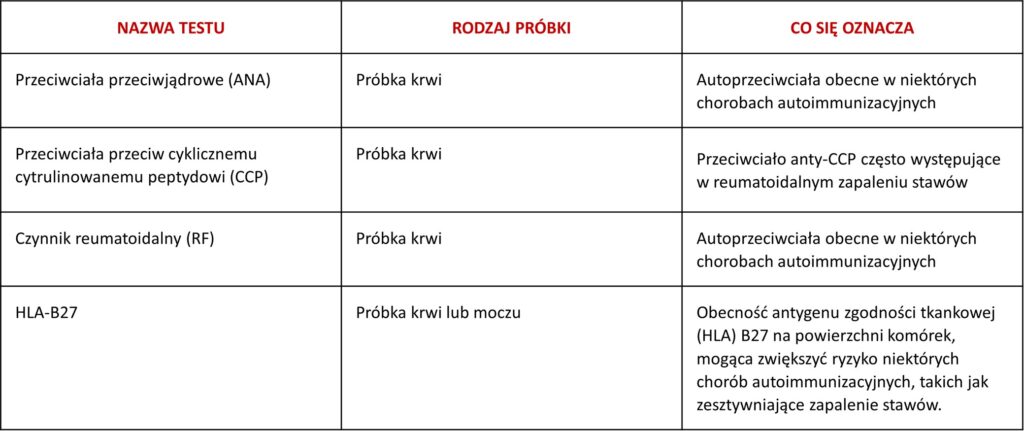W celu rozpoznania lub wykluczenia autoimmunizacyjnych chorób reumatycznych, w tym reumatoidalnego zapalenia stawów czy zesztywniające zapalenie stawów kręgosłupa: