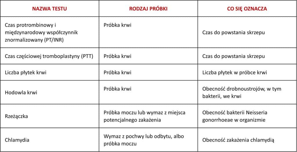 • Chlamydia: badanie wymaga od pacjenta pobrania wymazu z miejsca potencjalnego zakażenia lub pobrania próbki moczu i wysłania do laboratorium.