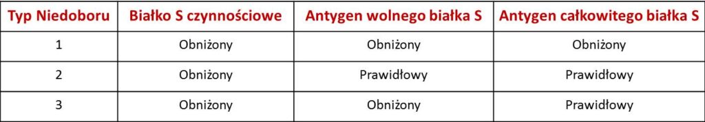 Jak już wiemy, istnieją trzy typy niedoborów białka S, które rozróżnia się w oparciu o wyniki badań laboratoryjnych: