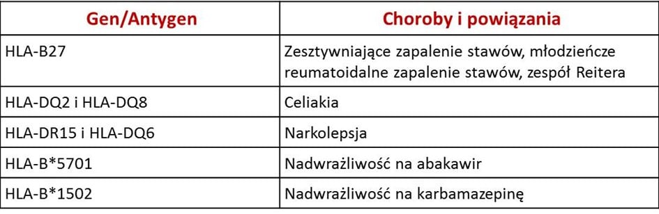 Tak. Niektóre allele genów HLA są związane z pewnymi chorobami oraz zaburzeniami autoimmunizacyjnymi. Nie stanowią o rozpoznaniu, lecz mogą być przydatne w celu jego potwierdzenia lub wykluczenia. Udokumentowano również zależności pomiędzy pewnymi allelami i nadwrażliwością na dane leki, na przykład: