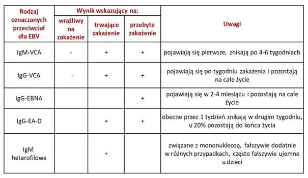 Interpretacja wyników oznaczenia przeciwciał dla EBV